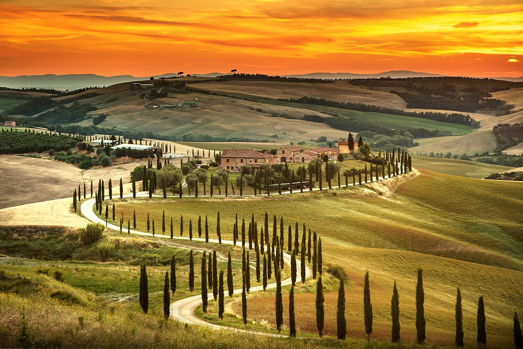 Tuscany is among the most beautiful regions of Italy. The gentle curves and slopes of the land will enchant you. Tuscany is as famous for its wine and cuisine as it is for its landscapes. Wine production focuses on red wines like Chianti, San Giovese, Rosso di Montalcino, Rosso di Montepulciano, Bolgheri, and others.